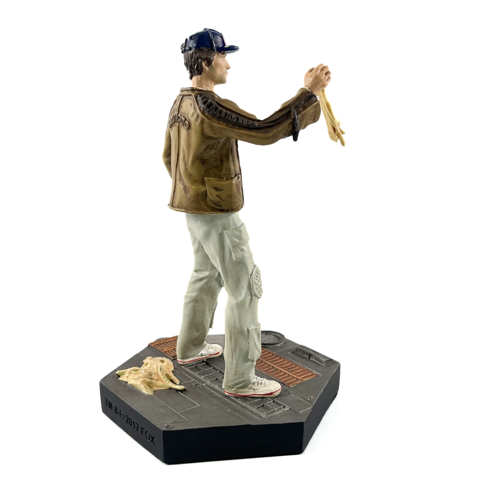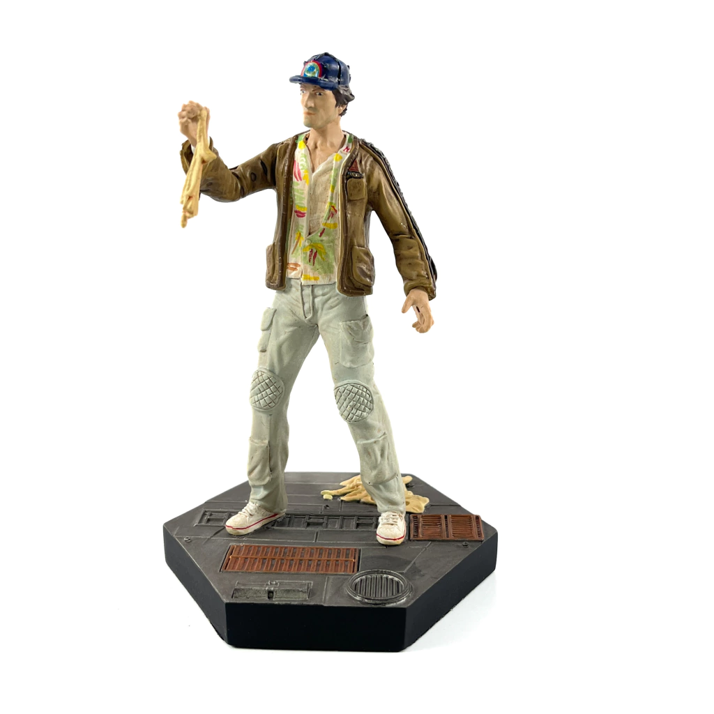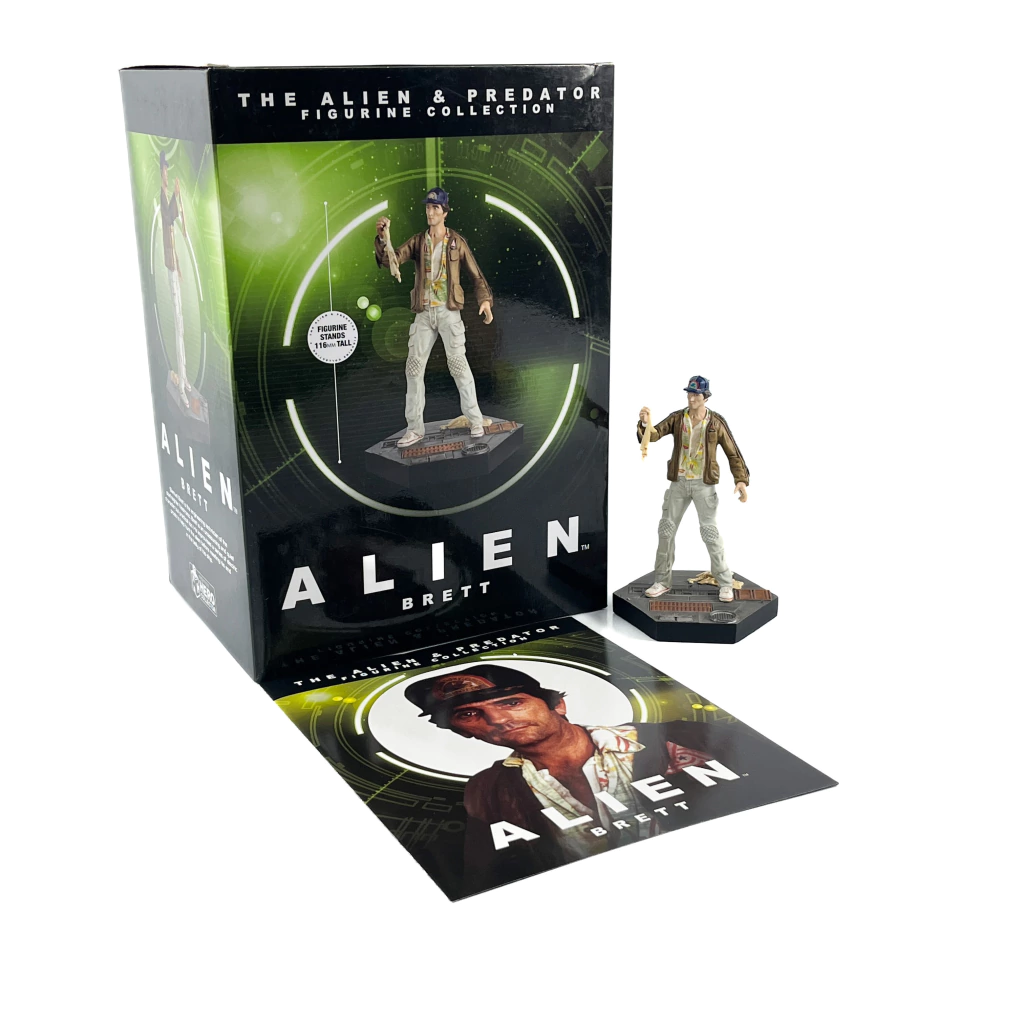 Com 13 cm de altura, a miniatura está habilmente posicionada sobre uma base hexagonal personalizada, proporcionando um contexto autêntico para a cena. Feita em resina de alta qualidade, cada detalhe da figura de Brett é cuidadosamente esculpido e pintado à mão, capturando sua expressão preocupada e a atmosfera tensa do momento.