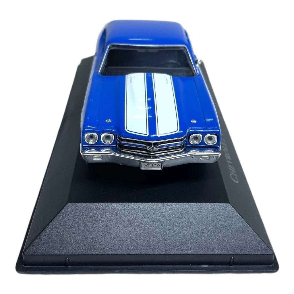 Desperte a paixão pela força bruta e pelo estilo clássico com a miniatura do Chevrolet Chevelle SS 454 de 1970. Este lendário muscle car, um símbolo de potência e design americano, ganha vida em um vibrante azul com detalhes em branco, pronto para ser o destaque da sua coleção.
