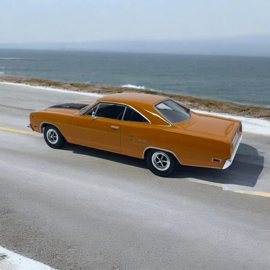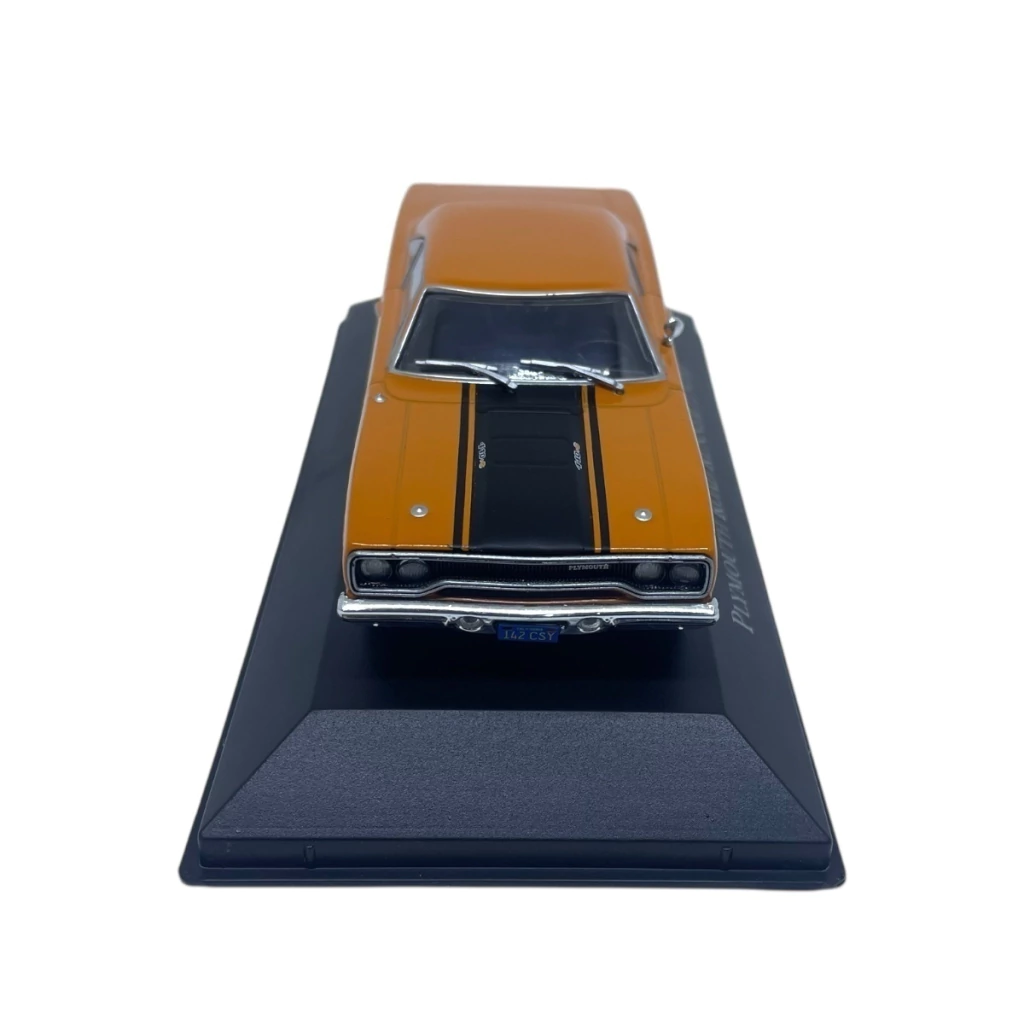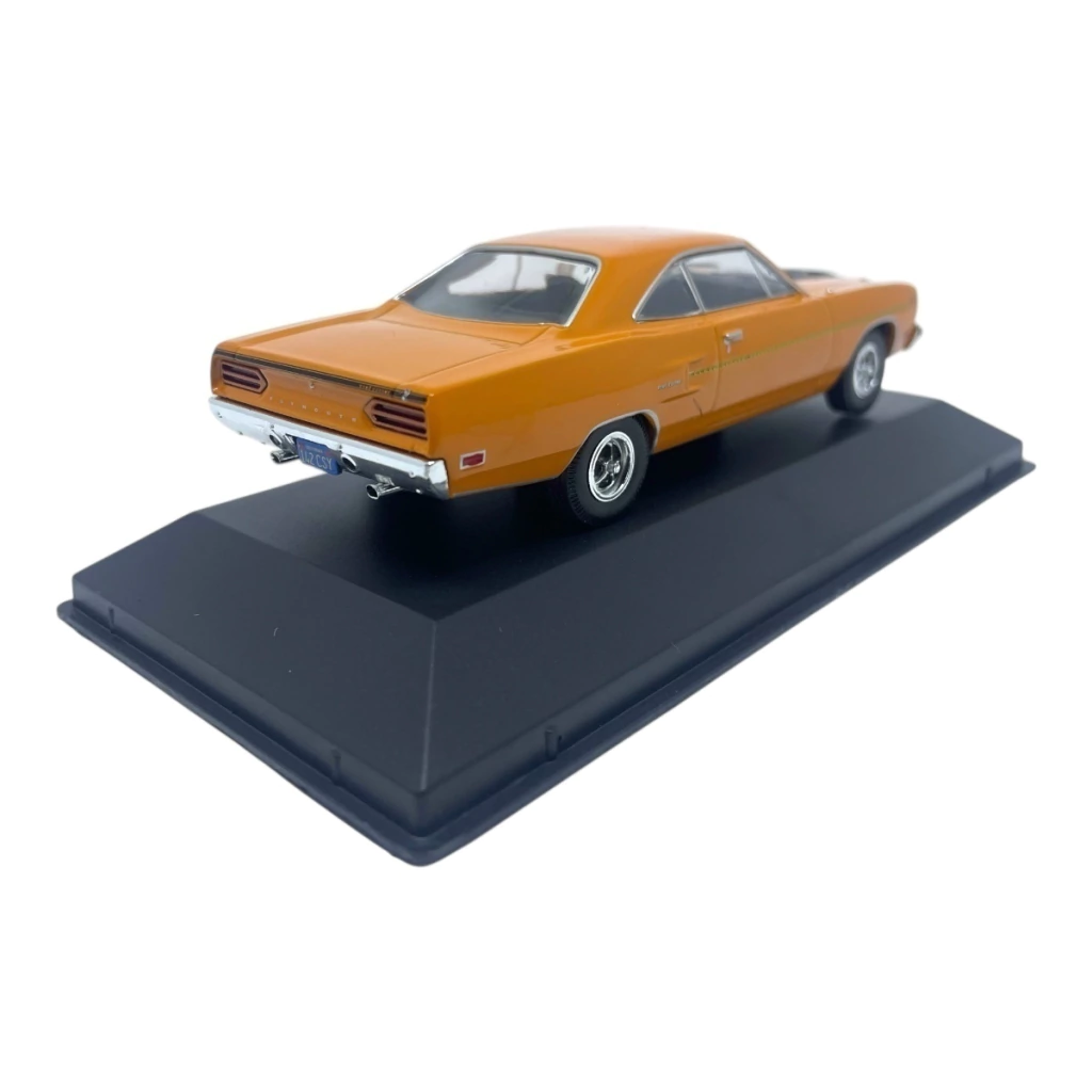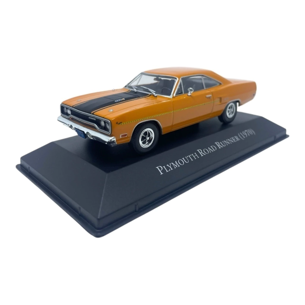Desperte a paixão pela velocidade e pelo espírito indomável dos muscle cars com a miniatura do Plymouth Road Runner de 1970, um ícone que combinava performance e um toque de irreverência. Nesta quinta edição da Coleção American Cars, este lendário esportivo ganha vida em um chamativo laranja com detalhes em preto, pronto para ser o destaque da sua coleção.
