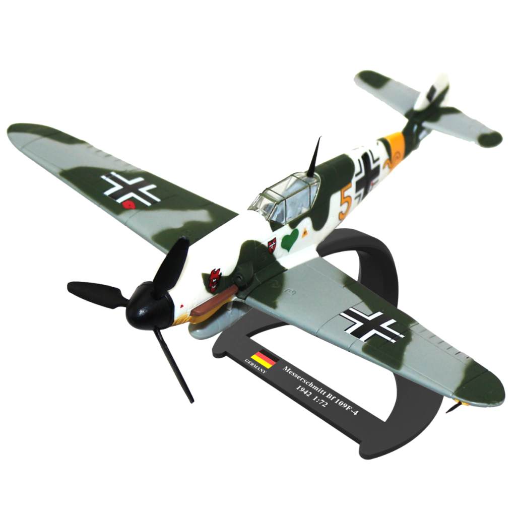 O Messerschmitt Bf 109F-4, edição 3 da Coleção Aviões da II Guerra Mundial, é uma réplica detalhada do caça mais letal da história da aviação, o pilar da Força Aérea Alemã (Luftwaffe). Esta versão "Friedrich" é amplamente considerada a melhor de todas as séries do Bf 109, sendo responsável por recordes inatingíveis de vitórias aéreas na Frente Oriental. O modelo, produzido pela Luppa e Mundo dos Colecionáveis, representa esta lenda com a camuflagem padrão verde e marrom (ou esquema de cores europeu/oriental, dependendo da representação), destacando-se pela sua aerodinâmica superior. O fascículo incluso, com 16 páginas, conta a história completa e a ficha técnica detalhada do Bf 109F-4.