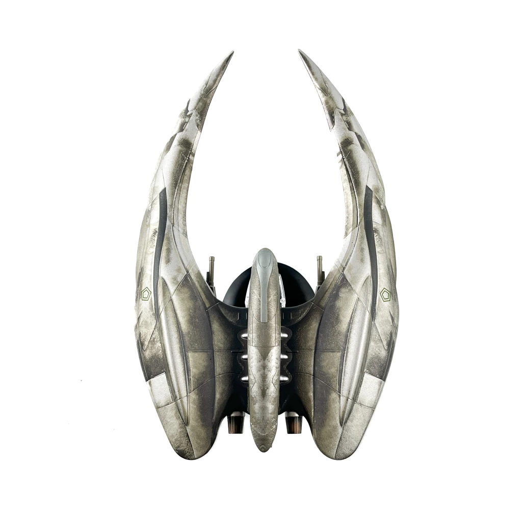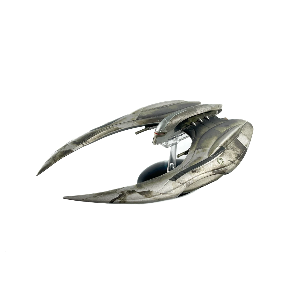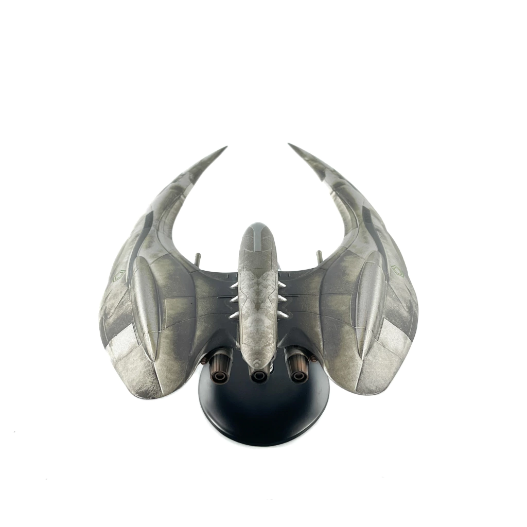 Esta nave Battlestar Galactica Cylon Raider mede aproximadamente 25 cm de comprimento. Seu design elegante significa que ela pode ultrapassar quase todas as naves inimigos e caçar naves mais lentas, além de desviar de balas em tiroteios.