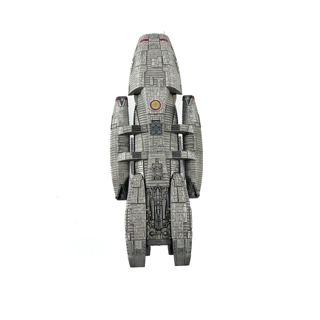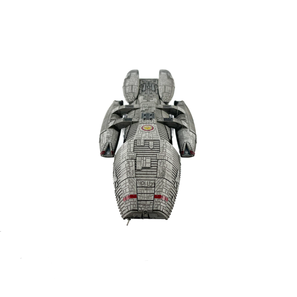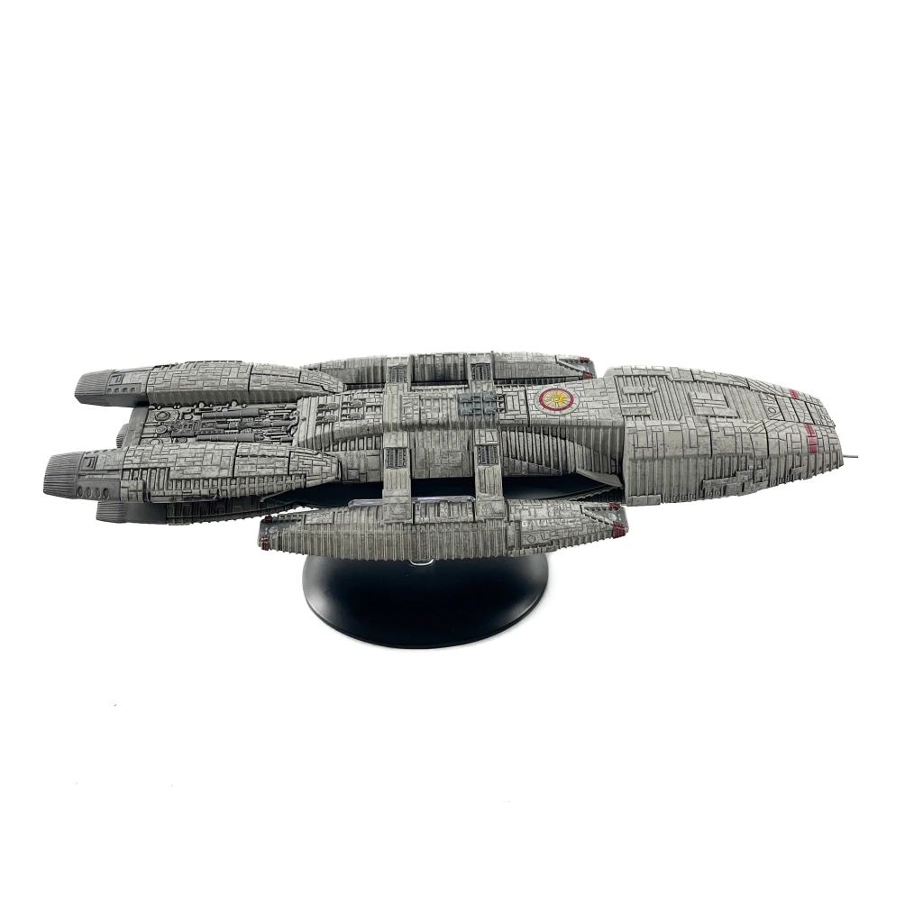 Essa incrível nave Battlestar Galactica mede aproximadamente 25 cm de comprimento e traz vida em metal fundido e materiais ABS de alta qualidade.