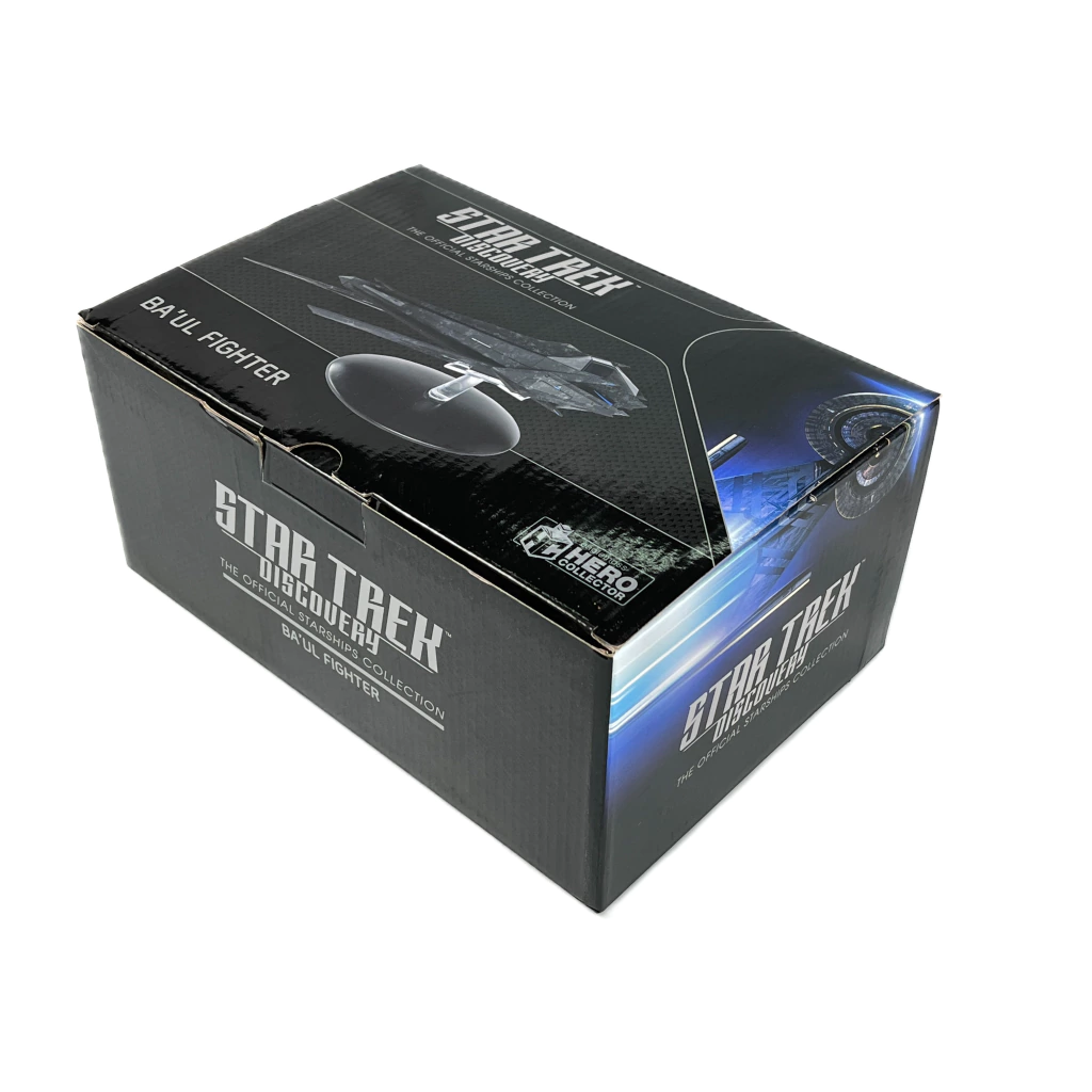 A nave estelar Ba'ul Fighter junta-se à frota na coleção oficial de naves estelares Star Trek Discovery, pronta para defender seu mundo! Ba'ul Fighter Starship é uma pequena nave de ataque com capacidade de dobra construído pelos Ba'ul. Esta nave de ângulo agudo foi pilotada por um único piloto e montou armamento de energia direcionada. Os Ba'ul usaram esses lutadores ao lado de naves sentinelas maiores para defender seu mundo natal, Kaminar. Uma espécie misteriosa e predatória, os Ba'ul oprimiram os Kelpiens - outra espécie nativa de Kaminar - por milênios, induzindo-os a viver com medo constante e aceitar o abate regular de sua própria população. Saru foi o primeiro Kelpien a descobrir a verdade, depois de fazer contato com a Frota Estelar e fugir de Kaminar como refugiado - anos depois, ele voltaria para despertar seu povo do controle de Ba'ul. Este fantástico modelo da Nave Estelar Ba'ul Fighter, fundido, recria a nave como vista na segunda temporada de Star Trek: Discovery. Foi projetado em preto com formas angulares acentuadas na parte de trás e uma pequena cabine para uma pessoa.