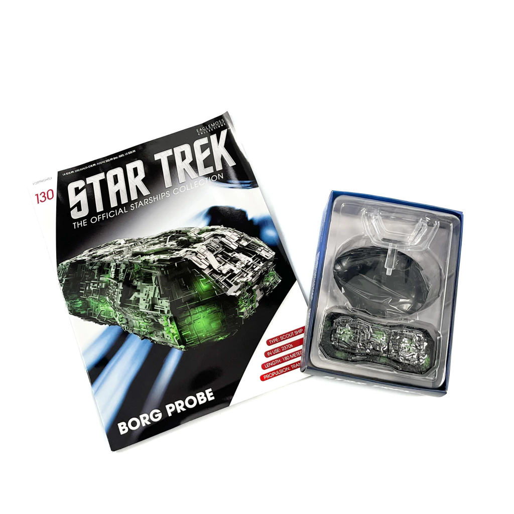 Feito de die-cast de alta qualidade, este incrível modelo de navio é recriado em miniatura. Como a maioria das outras naves Borg, a sonda era uma forma geométrica simples composta por várias placas e vigas semelhantes a tubos presas em seu exterior de uma maneira aparentemente aleatória, com assinaturas de energia verde brilhando de dentro