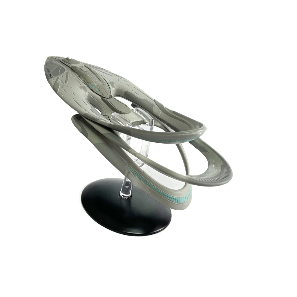 O navio USS Orville ECV-197 XL captura as linhas lindamente elegantes e o design sofisticado do navio. O navio futurista se destaca com os três loops de motor curvos na parte de trás.