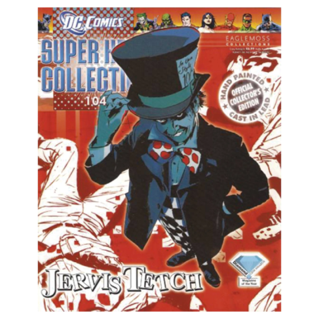 DC Figurines Regular: Jervis Tetch - Edição 104As DC Figurines da Eaglemoss são uma coleção impressionante de miniaturas detalhadas dos personagens mais emblemáticos do Universo DC. Cada figura é habilmente esculpida em resina de alta qualidade, capturando as características distintas e os trajes icônicos dos super-heróis e supervilões da DC.