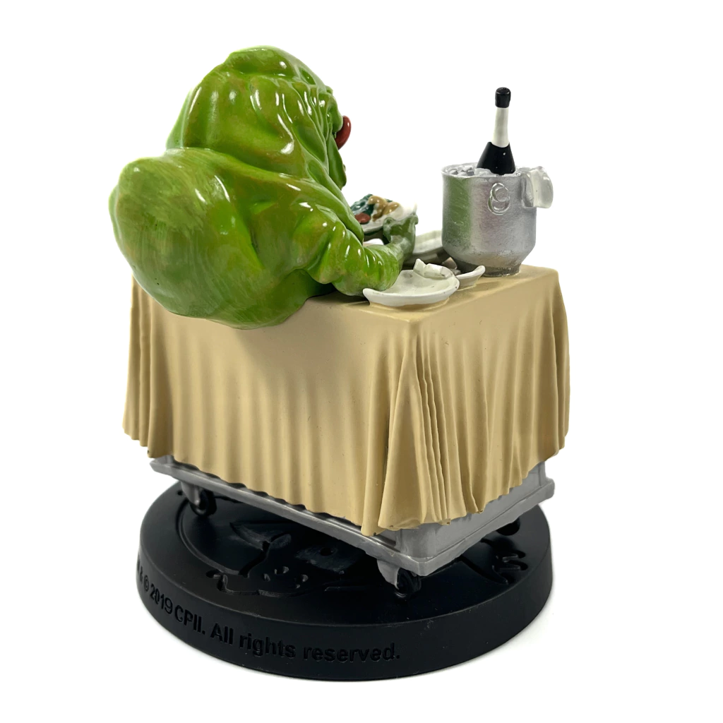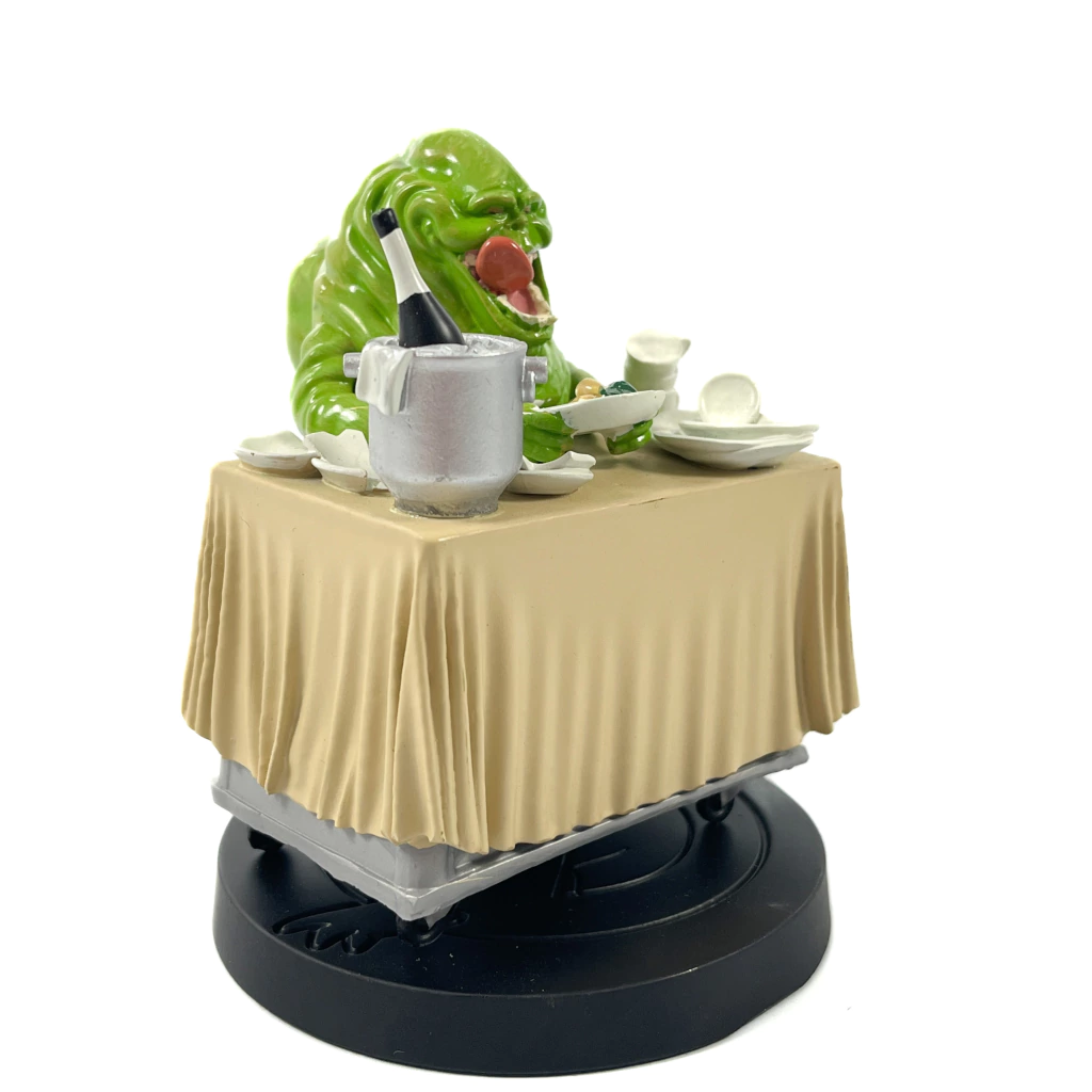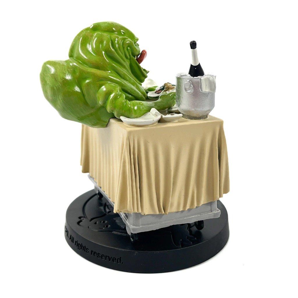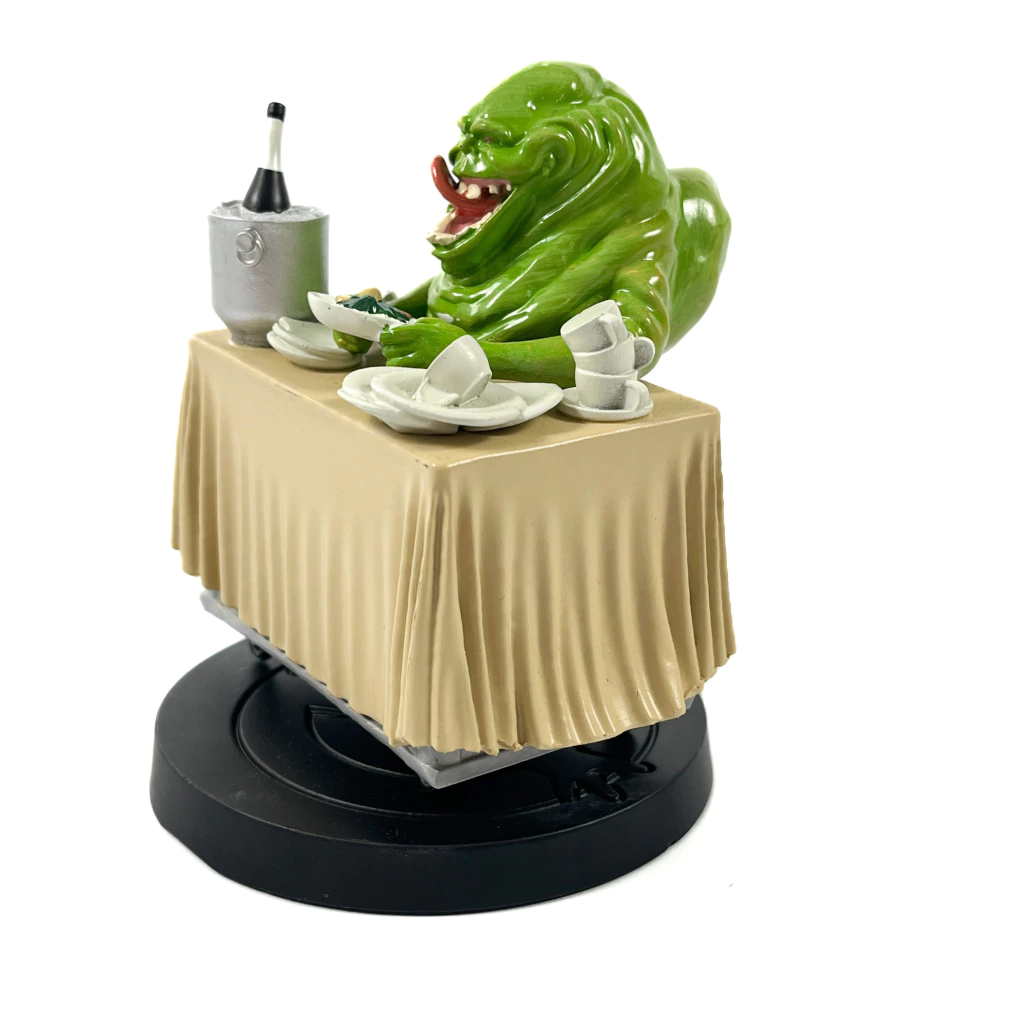 Esculpido em resina metálica e pintado à mão, o Slimer ganha vida com todos os seus detalhes distintivos, desde sua pele verde translúcida até sua expressão travessa. Ele é retratado flutuando no ar, pronto para causar alguma confusão ou devorar um lanche delicioso.