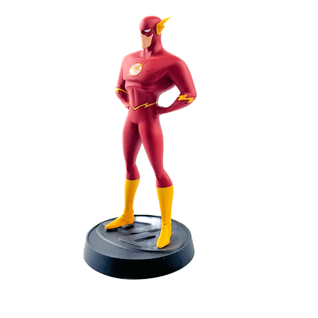 Com uma capacidade de reagir e se mover a velocidades incríveis, o Flash está sempre um passo à frente de qualquer inimigo, e amplia as miniaturas da Série da Liga da Justiça como a última edição dessa coleção fantástica! O Flash raramente fica parado, mas, quando ele fica, está pronto para apoiar seus amigos na Liga da Justiça. Quando Wally West adotou a identidade do Flash, ele também desenvolveu um novo visual. Ele veste um traje vermelho, especialmente adaptado para altas velocidades, com botas amarelas nos pés e raios na máscara. O logotipo do Flash é estampado no peito. A miniatura do Flash foi pintada à mão e é acompanhada por um fascículo ricamente ilustrado detalhando os poderes e habilidades do Velocista Escarlate!