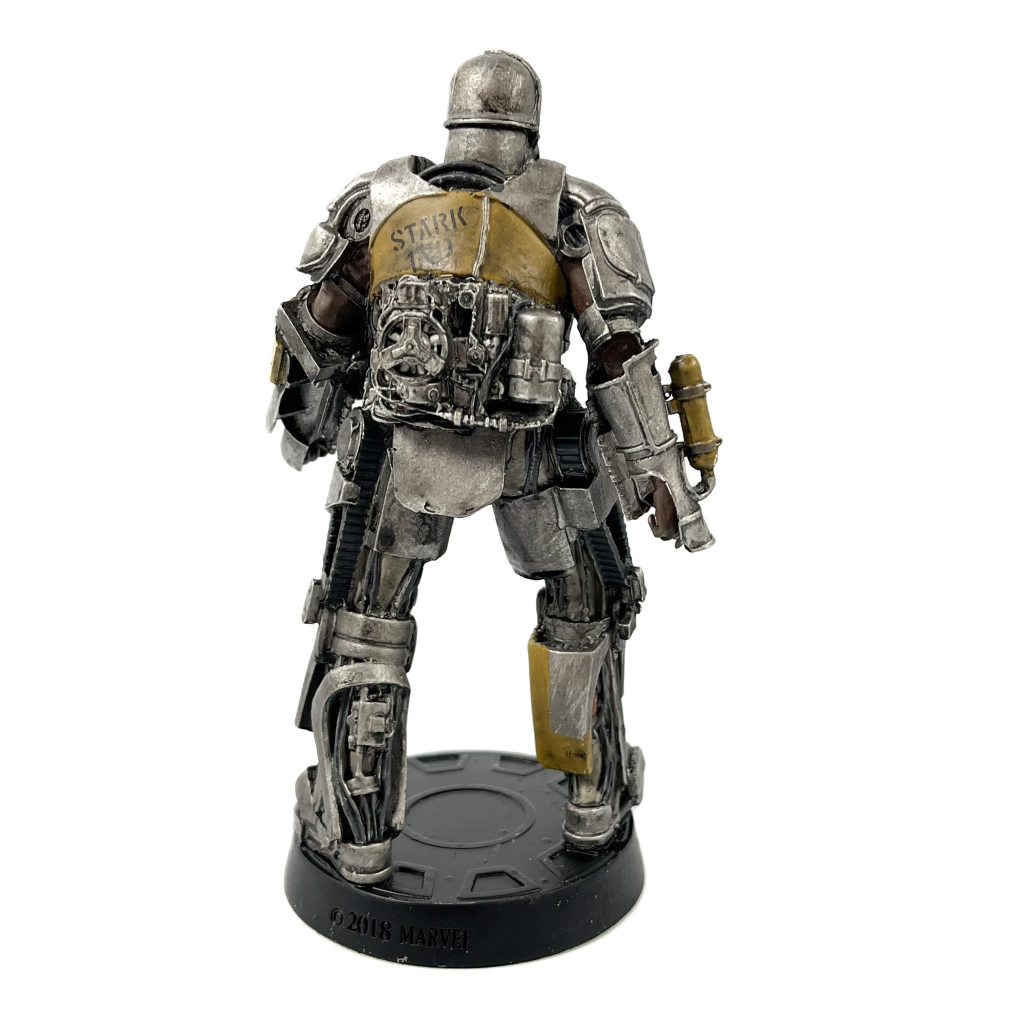Ele exibe a aparência original do traje simples do Homem de Ferro que Tony Stark estava atualizando e aperfeiçoando ao longo dos anos. A estatueta tem quase 14 cm de altura em uma base preta dos Vingadores com o logotipo da Marvel.