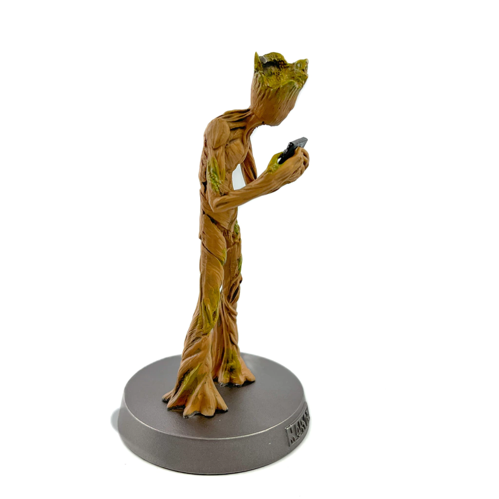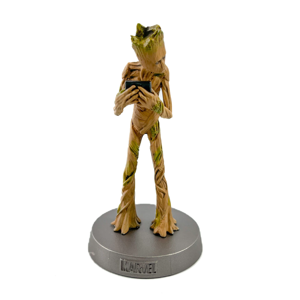 Renderizado pela primeira vez em metal totalmente fundido, A Eaglemoss traz para você o guardião galáctico da Marvel, Groot, como parte da nova coleção da Marvel Heavyweights. Tornando-se um adolescente mal-humorado após um surto de crescimento repentino, o adolescente Groot se preocupava mais com seu game, mas intensificou quando necessário para cortar seu próprio braço e fazer uma alça para o novo machado de Thor, Stormbreaker! Esta estatueta de Groot meticulosamente renderizada é baseada em sua aparência em Avengers: Infinity War e foi trabalhada em metal fundido para capturar as elaboradas texturas de árvore de seu corpo enquanto ele agarra seu fiel console de videogame portátil.